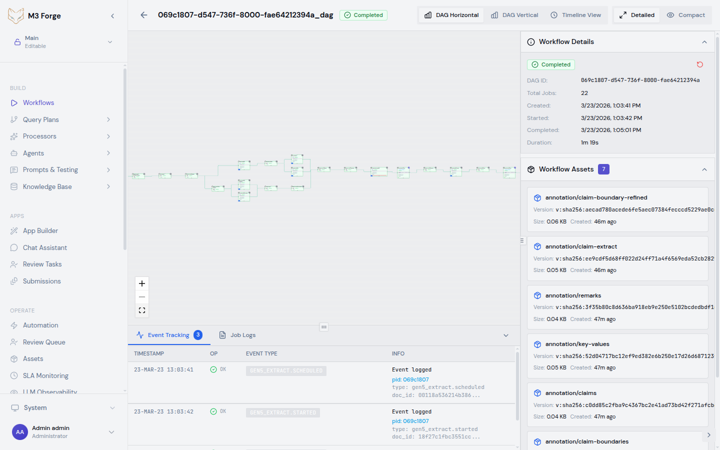 Create and edit visual AI pipelines using the M3 Forge workflow canvas.