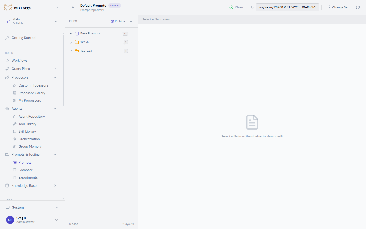 Navigate to a prompt repository and click any prompt file. The editor opens in the main panel.